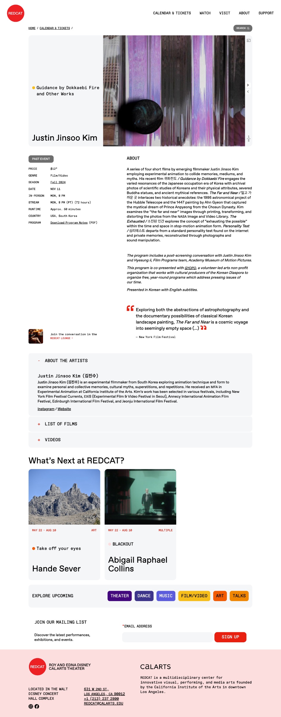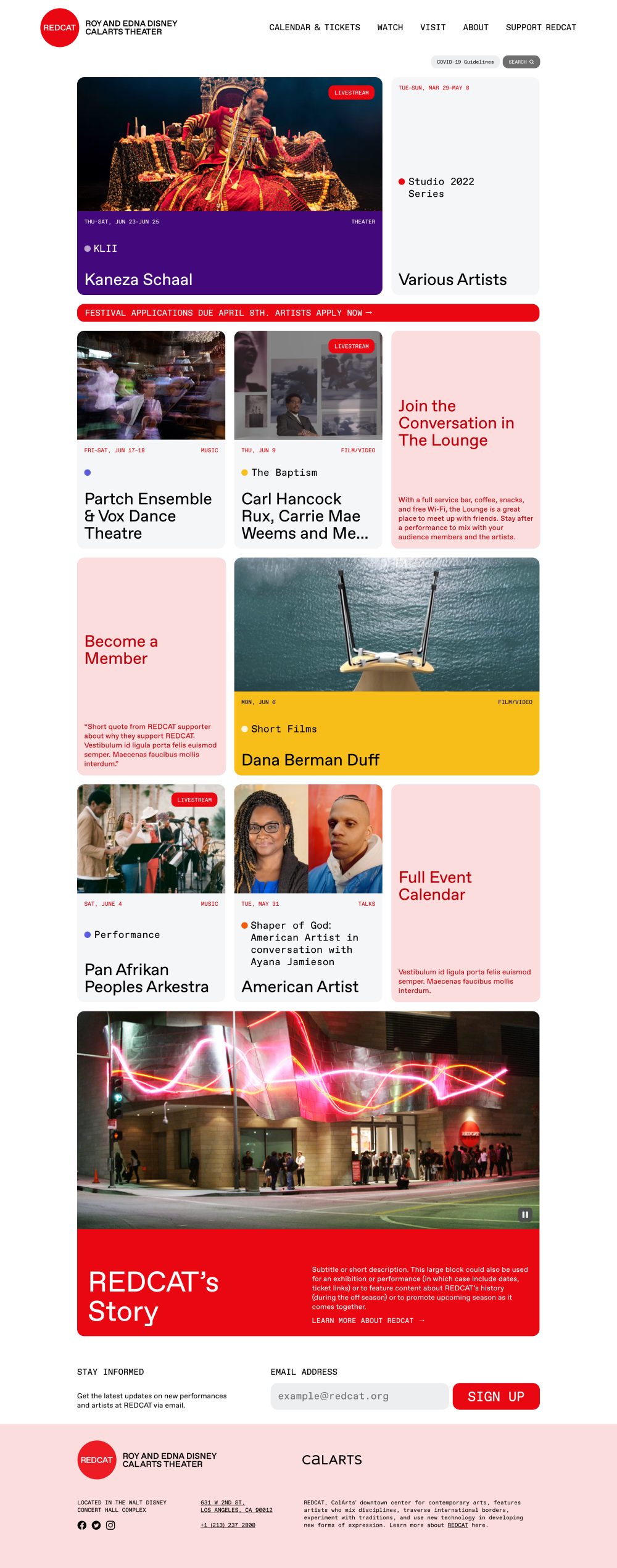 REDCAT (The Roy and Edna Disney / CalArts Theater), CalArts’ downtown center for contemporary arts, needed a digital platform as forward-thinking as its programming to replace an outdated site that couldn’t keep pace with the rhythm of performances and events.